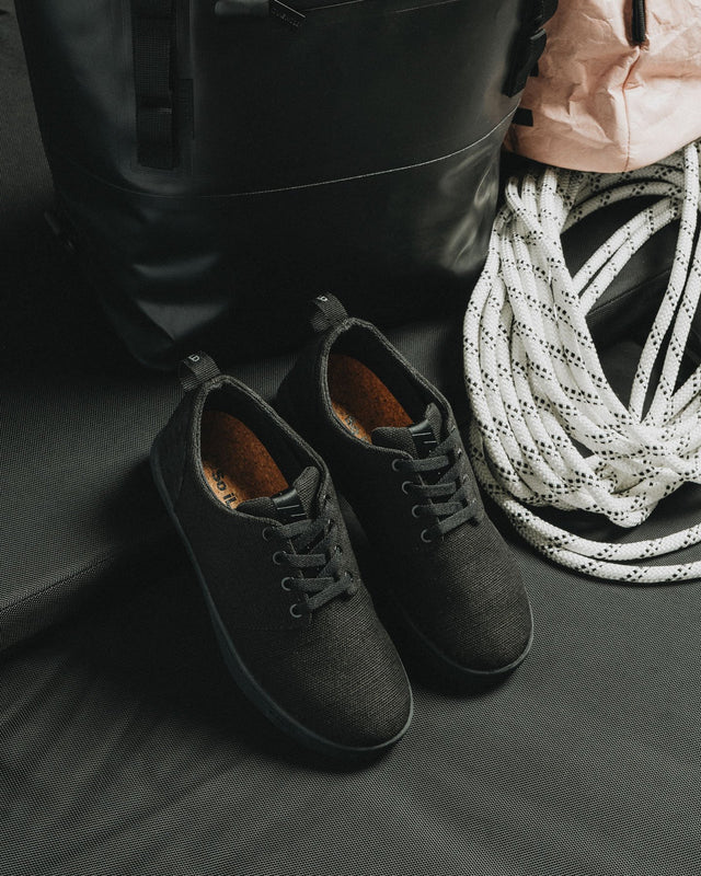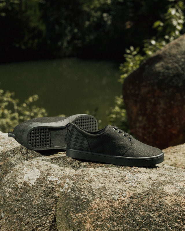 Designed to take you anywhere you roam, Jason Momoa's signature lifestyle shoe is now available with a hemp/cotton blend upper, printed Mano pattern on the heel, inner neoprene sleeve for comfort (made with recycled materials), an insole composed of a top layer of cork and lower layer of 30% BLOOM resin (harvested from algae), rubber outsole, and laces made with recycled materials.