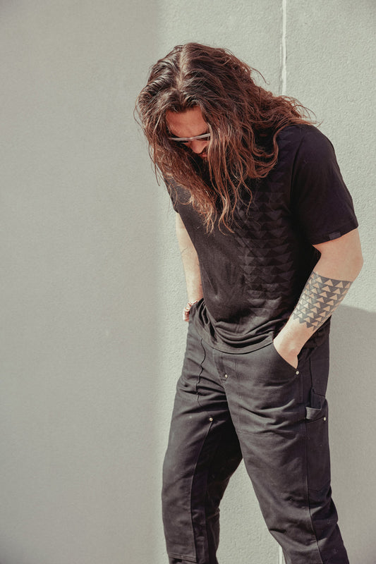 The 60% Polyester / 40% Cotton Black Wolf Nakoa Tee is constructed of a lightweight, poly/cotton blend and features a water-based ink print with a Mano pattern.
