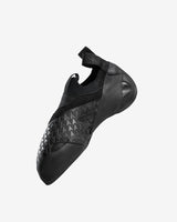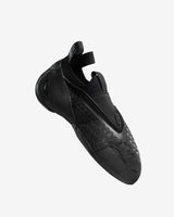 Designed and built on a hand-shaped, downturned last by Fred Nicole, ROAM Soft is a soft slipper (no midsole) developed with Jason Momoa as part of the So iLL x On The Roam collection. ROAM Soft features a three-way stretch knit entry with an elastic band stitched to a durable, comfortable, unlined vegan microsuede upper. This shoe is tensioned from under the toe to the back of the heel while the laser etched rand generates tension as well. The outsole is split and outfitted with Vibram XS Grip Rubber which extends in a wide band to the top of the heel. ROAM Soft is ideal for aggressive overhanging bouldering or sport climbing where toe power and sensitivity are crucial. The combination of a soft toe box combined with a split outsole allows for precision placement and power transfer on small foot holds and pockets. The heel hooking capabilities of this shoe are unmatched, which presents climbers with a slipper style shoe like no other currently available on the market - essentially a talon (in shoe form) for the human foot.