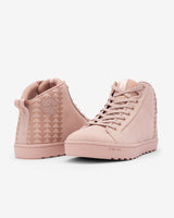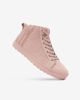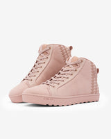 The Dirty Pink Drifter, the first mid-top shoe in the So iLL x On The Roam collection, by Jason Momoa, includes a Mano pattern and features a 100% organic cotton upper with water resistant coating, a 30% BLOOM resin insole (an alternative to synthetic and petrochemical EVA foams) with a top layer of cork, and an aggressive rubber outsole.